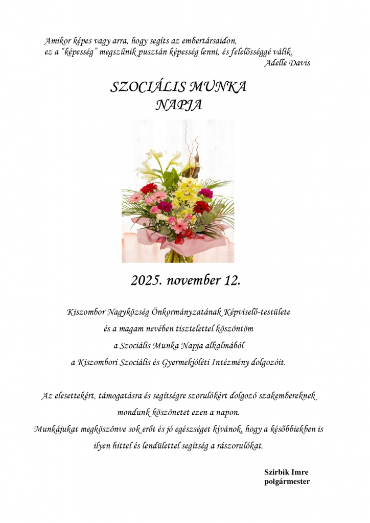 Kiszombor Nagyközség Önkormányzatának Képviselő-testülete a 2025. május 13-án tartott ülésén hozzájárult a Dr. Kiss Katalin háziorvos és Dr. Drenkovics Dániel sebész szakorvos között - a Kiszombor II. számú vegyes háziorvosi körzet vonatkozásában - a praxis tulajdonjogának átruházásáról létrejött szerződéshez.