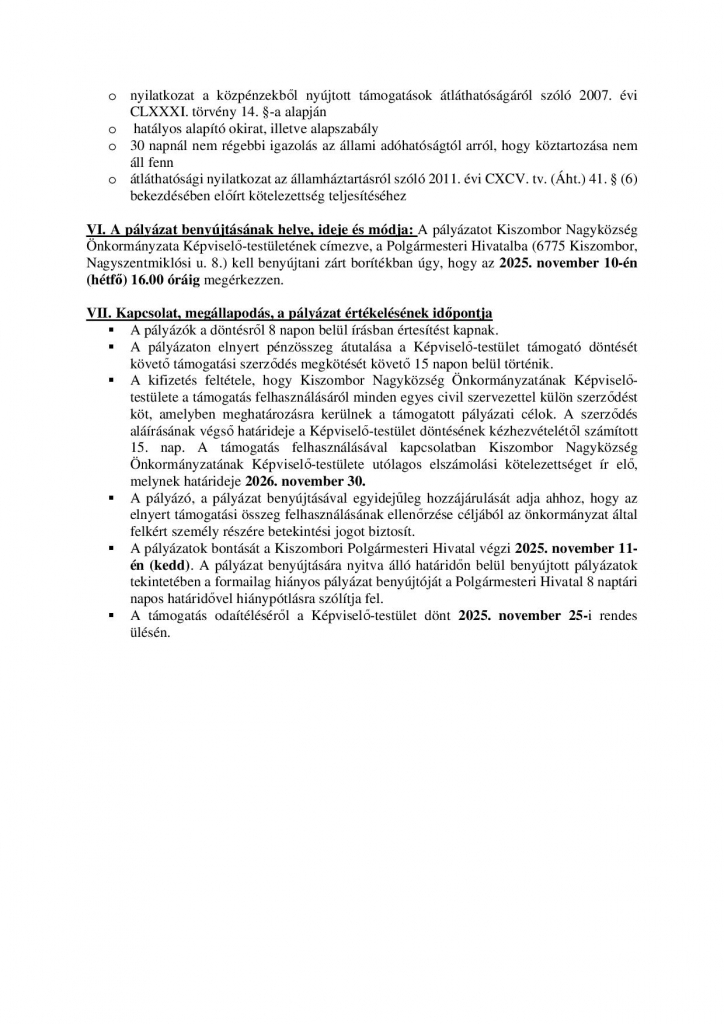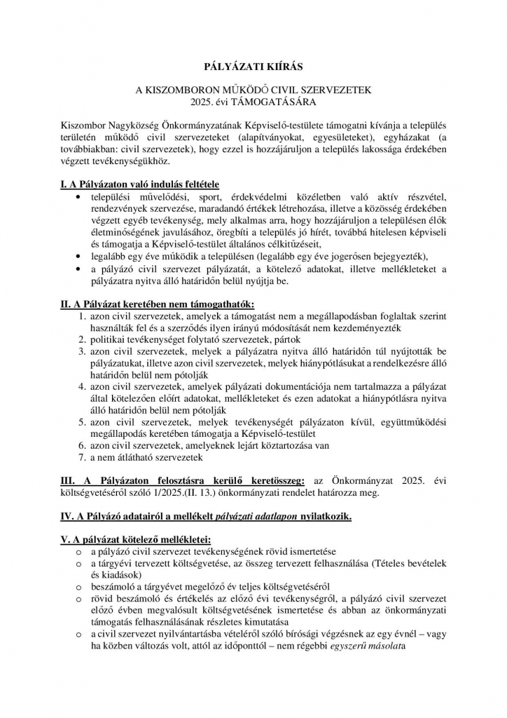 Mellékletetek: http://www.kiszombor.hu/hirek/civil-szervezetek-tamogatasa-2025.html