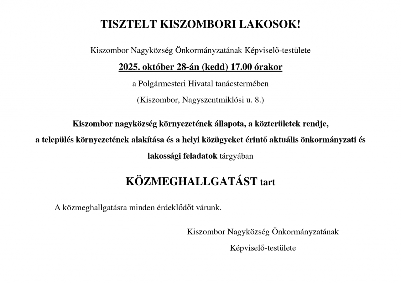 Kiszombor Nagyközség Önkormányzata Képviselő-testülete a 118/2025. (IX.11.) számú képviselő-testületi határozatával elfogadta a Bursa Hungarica Felsőoktatási Önkormányzati Ösztöndíjpályázat 2026. évi fordulójához történő csatlakozást.