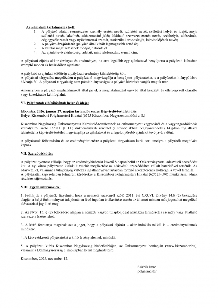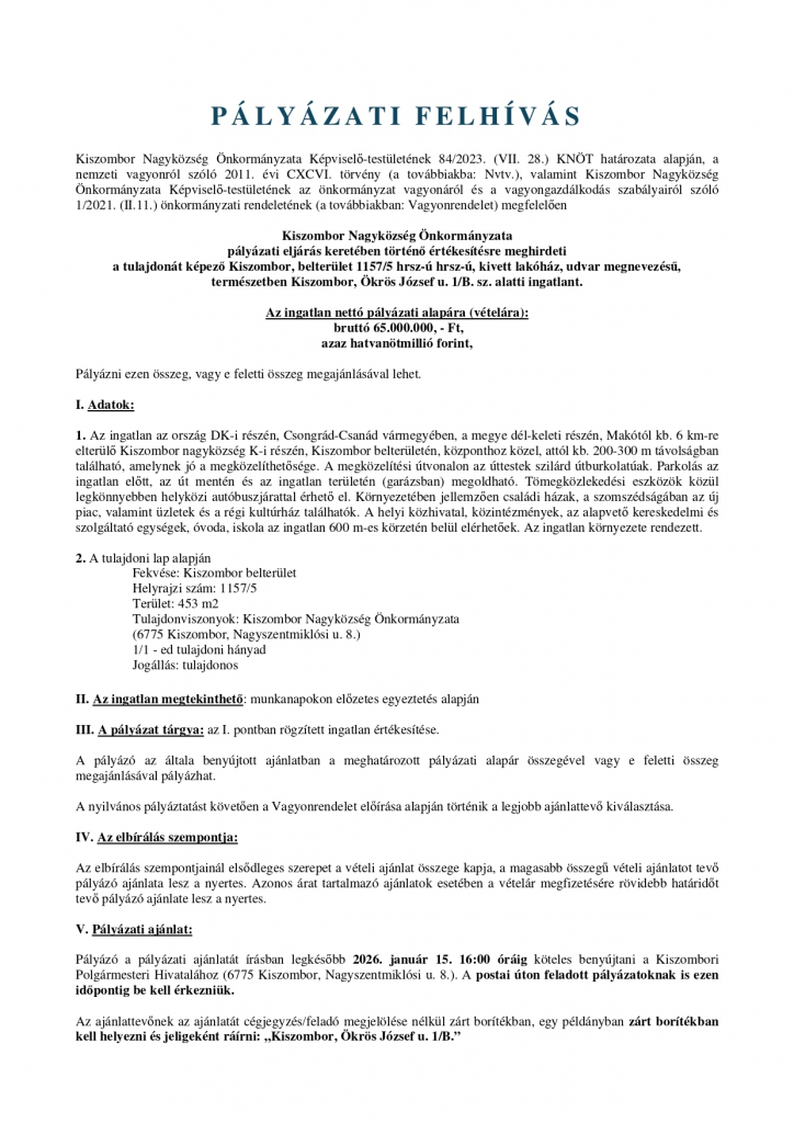 Kiszombor Nagyközség Önkormányzatának Képviselő-testülete a 2025. május 13-án tartott ülésén hozzájárult a Dr. Kiss Katalin háziorvos és Dr. Drenkovics Dániel sebész szakorvos között - a Kiszombor II. számú vegyes háziorvosi körzet vonatkozásában - a praxis tulajdonjogának átruházásáról létrejött szerződéshez.